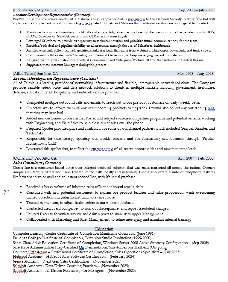 Resume & Experience